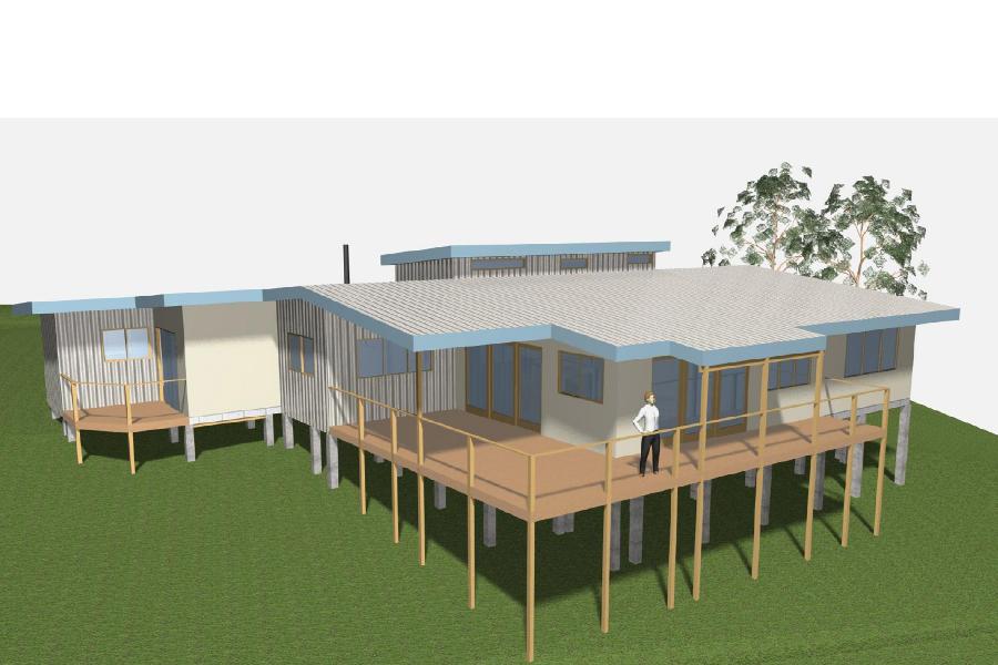 Although the living area faces north, it is so deep, the core of the house would be rather dim. In response, the deep interior has solar access through a series of clerestory windows. Skylights are cheaper but because they directly face the summer sun, overheating is a problem. The amount of westerly glass in two of the bedrooms would be a problem without substantial external shutters or a pergola.